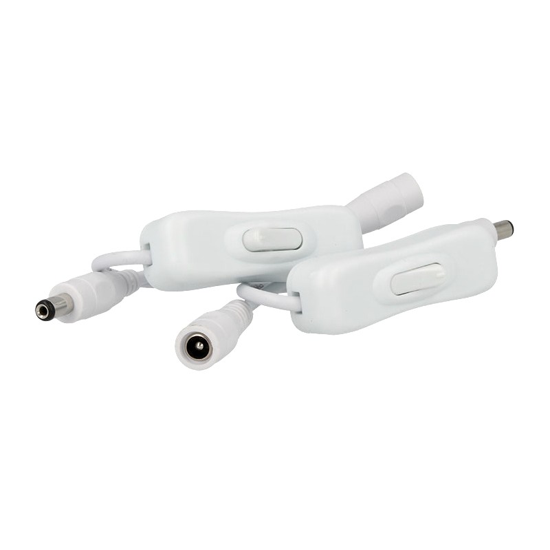 In vendita una confezione da 2 PZ Interruttore ON/OFF Colore Bianco Con Cavo Presa Femmina e Spina Maschio DC 5,5mm x 2,1mm Per Alimentazione.