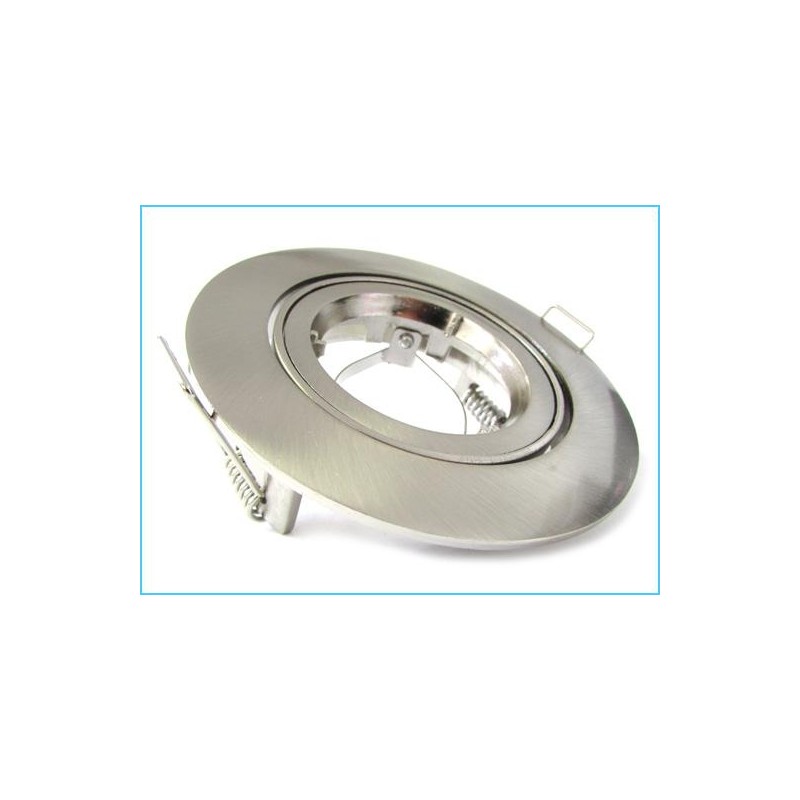 Carcassa, Cornice, Supporto Porta Faretto ad Incasso Orientabile Rotondo,Materiale Acciaio,Modello Con Ghiera Svitabile,Colore Argento Satinato.