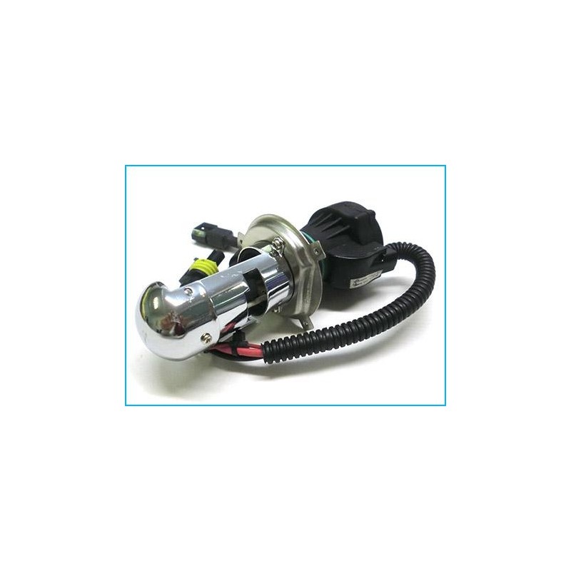 Questo modello di lampada, H4 bixenon ha un solo bulbo xenon; nella parte posteriore della lampada c'è un sistema elettromagnetico: quando la lampada riceve l'impulso di corrente, il bulbo viene tirato indietro e la luce diventa abbagliante; quando l'impulso di corrente si interrompe, la molla dentro la lampada spinge il bulbo facendolo tornare in posizione iniziale e quindi all'illuminazione anabbagliante.