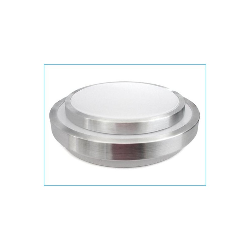 Plafoniera rotonda vuota da soffitto (Diametro Base/Supporto per fissaggio a soffitto). Modello con doppio anello in alluminio satinato